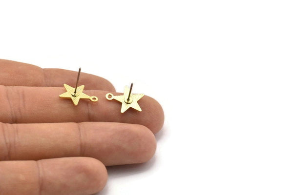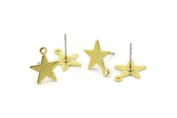 Brass Star Earring, 12 Textured Raw Brass Star Stud Earrings With 1 Loop (14x0.80mm) A1896 A2252