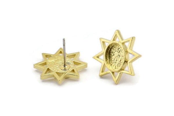Raw Brass Star Stud Earrings With 1 Oval Shaped Stone - Pad Size 8x6mm