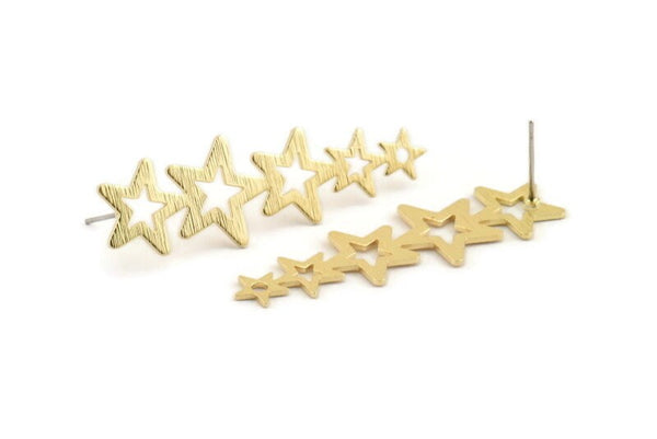 Brass Star Earring, 8 Textured Raw Brass Star Stud Earrings (45x14x0.80mm) D1533 A1407