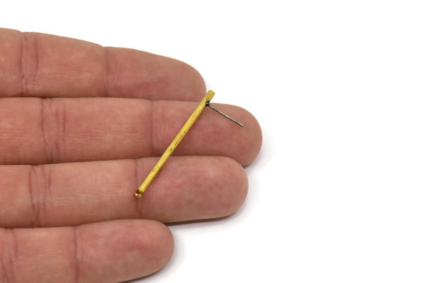 Brass Stick Earring, 6 Raw Brass Stick Stud Earrings With 1 Hole (2x40mm) D1556