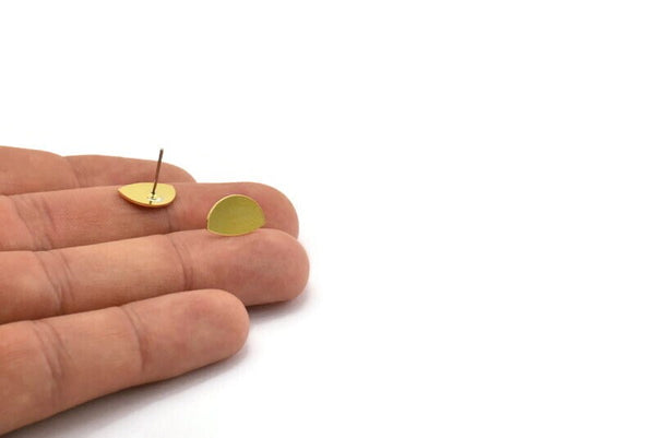 Brass Stud Earring, 10 Raw Brass Tiny D Shaped Stud Earrings (8x12.5x0.60mm) A4266