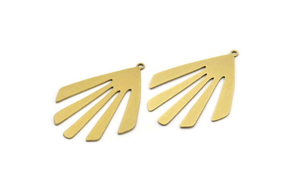 Brass Sun Charm, 6 Raw Brass Rising Sun Flag Shaped Charms With 1 Loop, Earring Findings (38x28x0.60mm) A3356