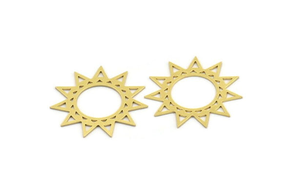 Brass Sun Charm, 8 Raw Brass Ethnic Sun Charms, Charm Pendants, Earring Findings (30x0.60mm) A4365