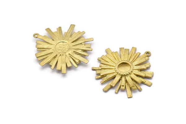Raw Brass Sunshine Charms With 1 Loop - Pad Size : 6mm