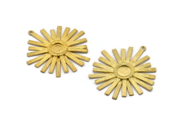 Raw Brass Sunshine Charms With 1 Loop - Pad Size : 8mm