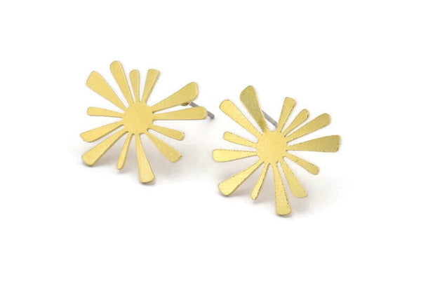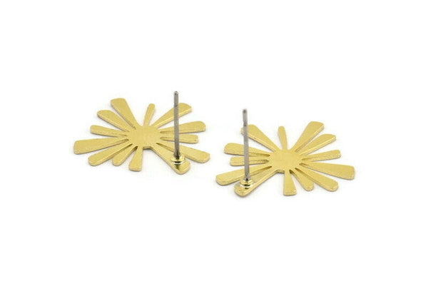 Brass Sun Earring, 10 Raw Brass Sun Shaped Stud Earrings (20x20x0.60mm) A3018