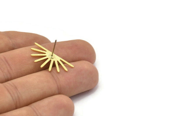 Brass Sun Earring, 10 Textured Raw Brass Sun Stud Earrings (25x13x0.70mm) M01398 A2384