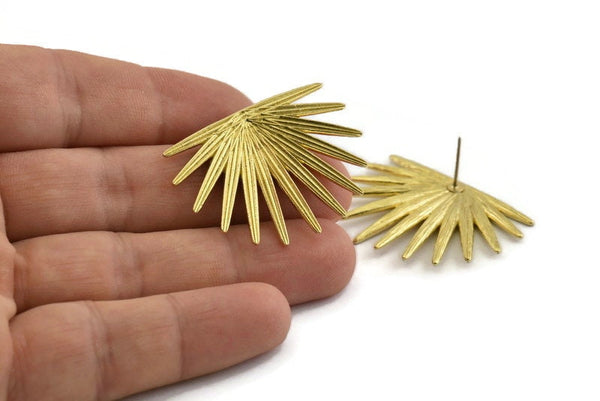 Brass Sun Earring, 2 Raw Brass Sunshine Stud Earrings (38x28mm) N1059