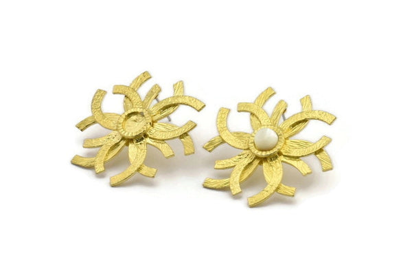 Raw Brass Sunshine Stainless Steel Stud Earrings - Pad Size 6mm