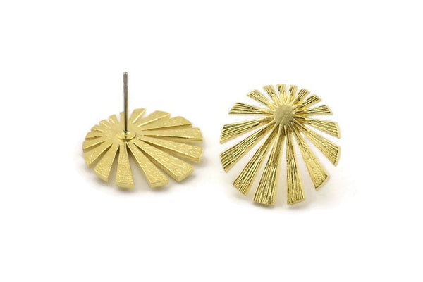 Brass Sun Earring, 4 Raw Brass Rising Sun Flag Stud Earrings (19x1.2mm) N1436