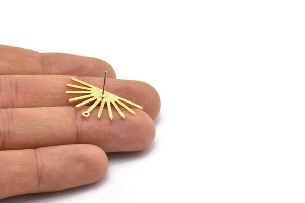 Brass Sun Earring, 4 Raw Brass Sun Stud Earrings With 1 Loop (17x30x0.80mm) M02315 A0563