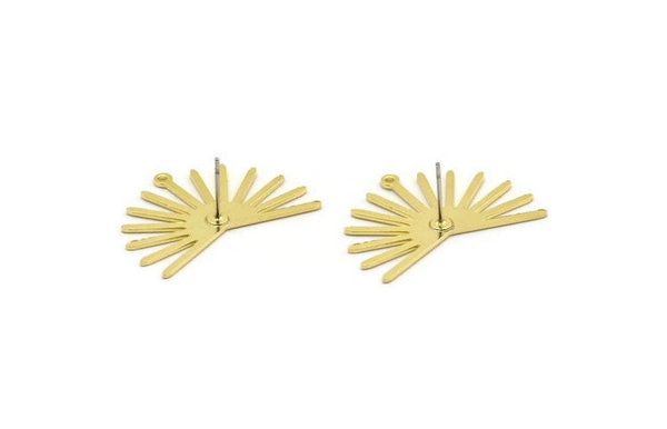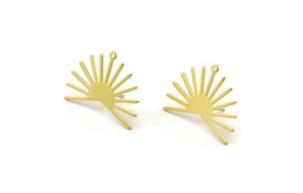 Brass Sun Earring, 4 Raw Brass Sun Stud Earrings With 1 Loop (22x30x0.80mm) M02268 A6831