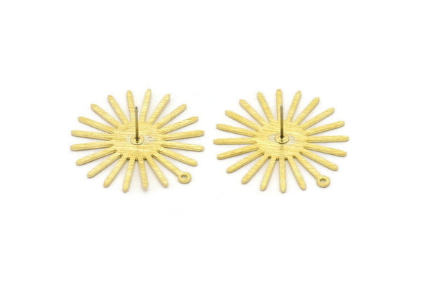 Brass Sun Earring, 6 Textured Raw Brass Sun Stud Earrings With 1 Loop (31x30x0.80mm) M02227 A2545