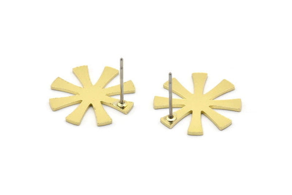 Brass Sun Earring, 8 Raw Brass Sun Shaped Stud Earrings (18x17x0.80mm) A2673