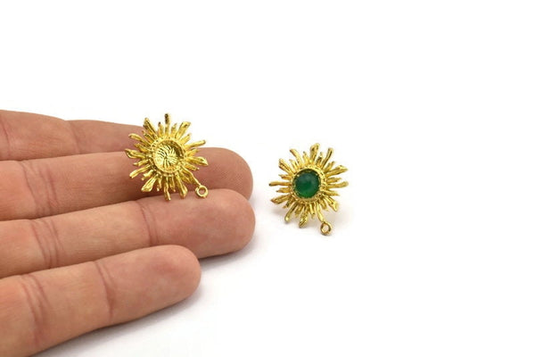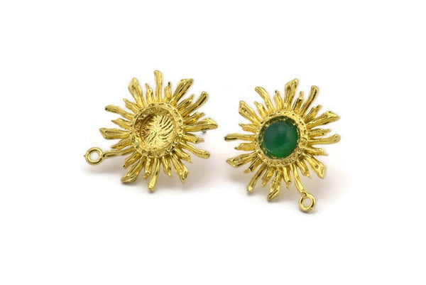 Raw Brass Sunshine Stud Earrings with 6mm Stone pad, with 1 Loop