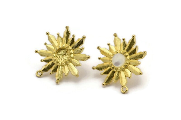 Raw Brass Sunshine Stud Earrings with 6mm Stone pad, with 1 Loop