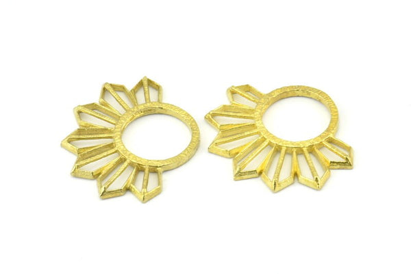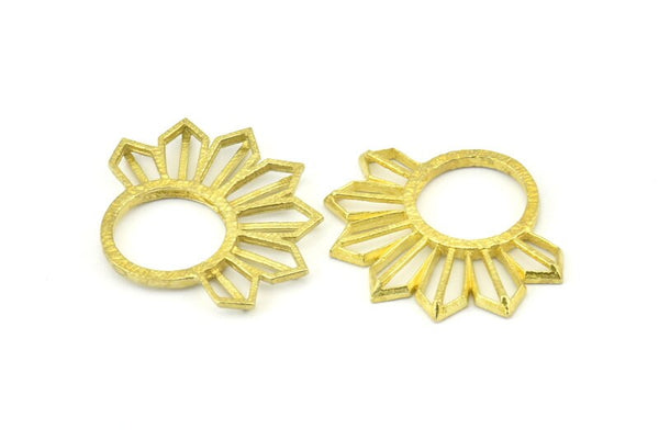 Brass Sun Pendant, 4 Raw Brass Textured Sunny Pendants, Earrings, Findings (29x35mm) BS 2434