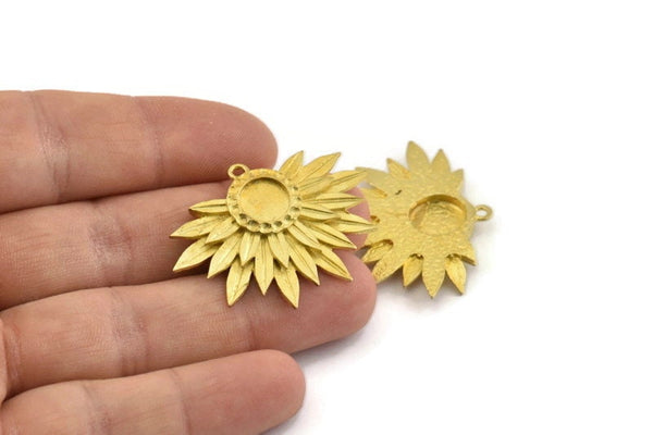 Raw Brass Flower Charm Earrings With 1 Loop - Pad Size : 8mm