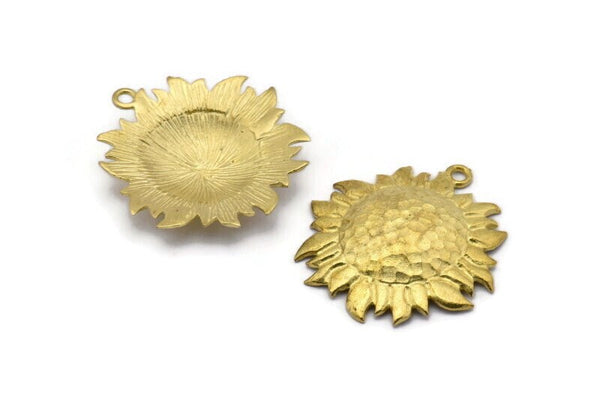 Brass Sunflower Charm, Raw Brass Flower Charms With 1 Loop, Pendants, Earrings (31x28mm) N0713