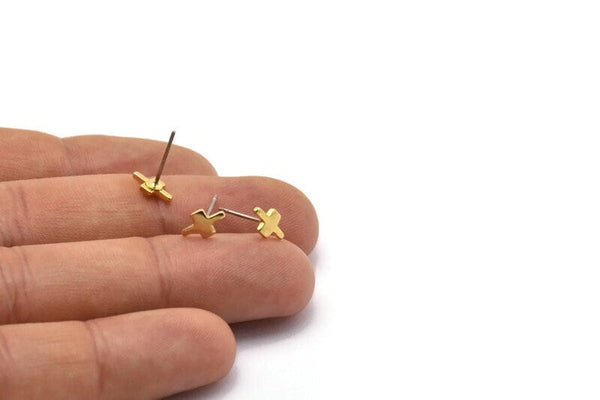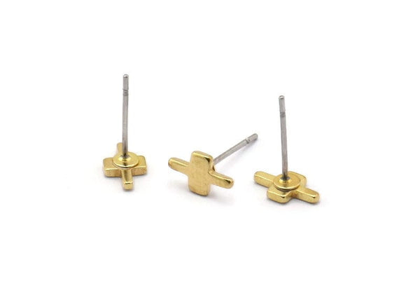 Brass T Earring, 12 Raw Brass T Shape Stud Earrings (9x5x1mm) D1014 A1240