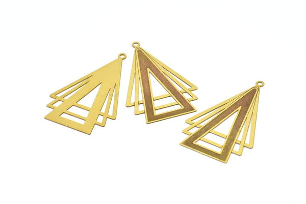 Brass Triangle Charm, 10 Raw Brass Triangle Charms With 1 Loop, Earrings, Pendants (43x27mm) D0629