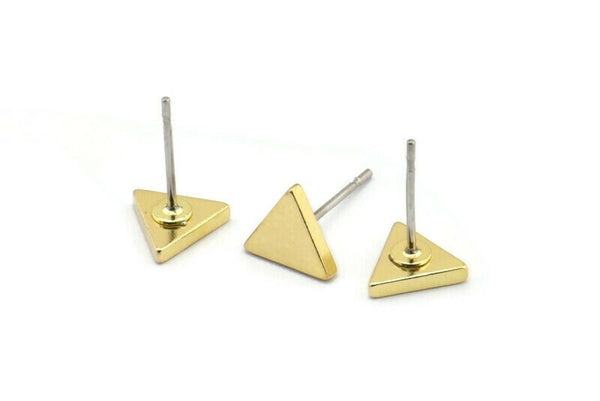 Brass Triangle Earring, 10 Raw Brass Triangle Stud Earrings (7x1.5mm) D1505 A1378