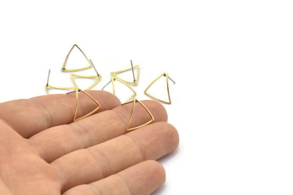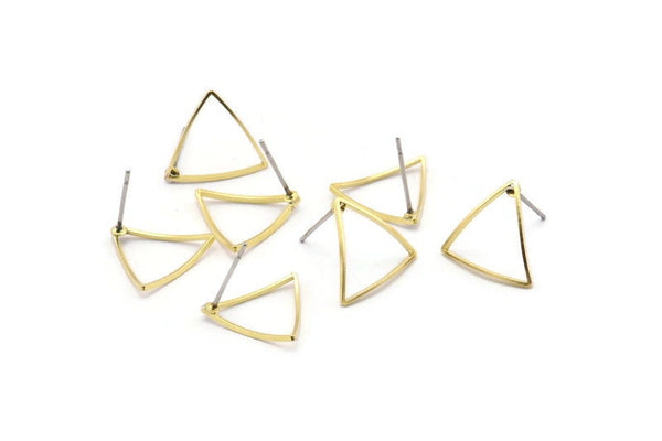 Brass Triangle Earring, 12 Raw Brass Open Cambered Triangle Stud Earrings (17x0.5x0.9mm) A2361