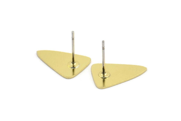 Brass Triangle Earring, 12 Raw Brass Triangle Shaped Stud Earrings (15x11x0.60mm) A2929
