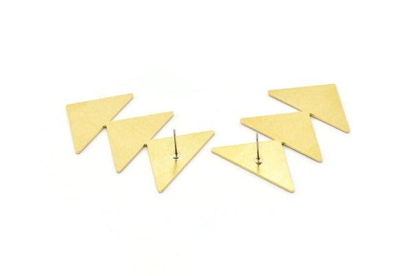 Brass Triangle Earring, 2 Raw Brass Triangle Stud Earrings (45x30x1mm) M01804 A2497