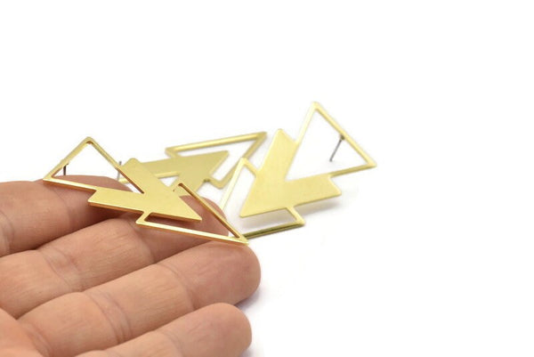 Brass Triangle Earring, 4 Raw Brass Triangle Stud Earrings (47x21x1mm) M01106 A2268
