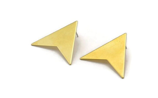 Brass Triangle Earring, 4 Raw Brass Triangle Stud Earrings Without Holes (33x33x33mm) Brass 045-0 A0151 A6041