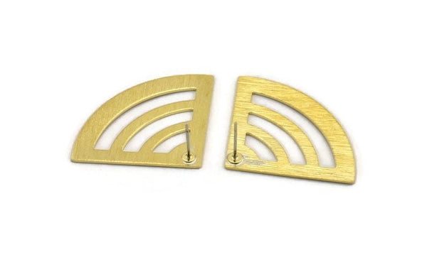 Raw Brass Fan Stamping Stud Earrings, Findings