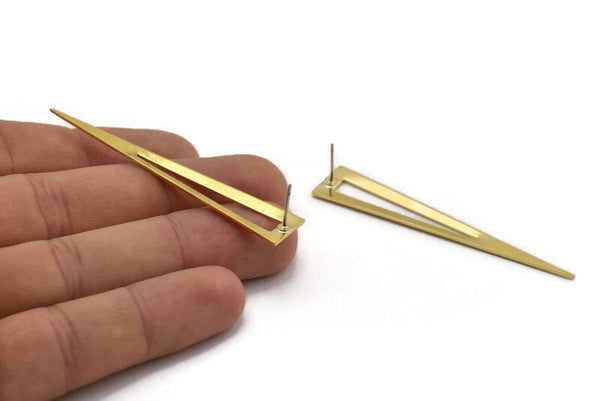 Brass Triangle Earring, 6 Raw Brass Triangle Stud Earrings (66x12x0.80mm) D0217 A5804