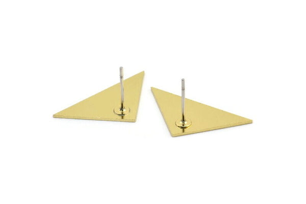 Brass Triangle Earring, 8 Raw Brass Triangle Shaped Stud Earrings (12x23x0.60mm) A2908