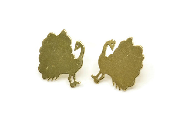Brass Turkey Earring, 6 Raw Brass Tiny Turkey Shaped Stud Earrings, Animal Jewelry, Findings (19x15x0.80mm) SMP2540 A5842