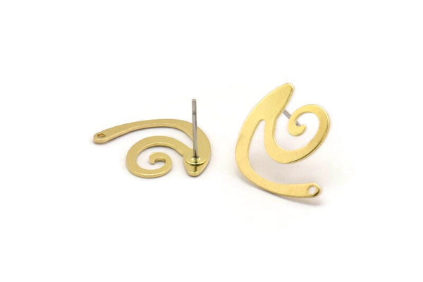 Brass Wavy Earring, 10 Raw Brass Wavy Shaped Stud Earrings With 1 Hole (18x15x0.60mm) D961 A6873