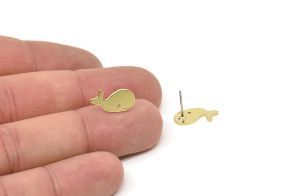 Raw Brass Tiny Whale Shaped Stud Earrings