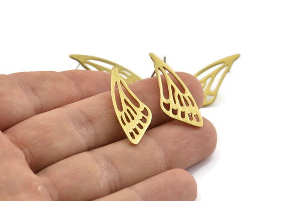 Raw Brass Wing Stud Earrings