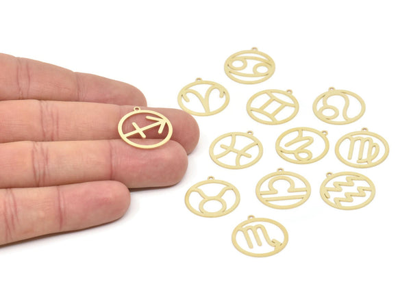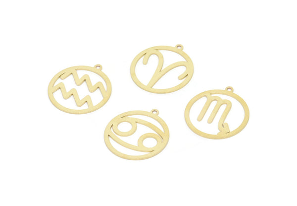 Brass Zodiac Charm, Raw Brass Zodiac Charms With 1 Loop, Pendants, Earring Charms, Findings (22x20x0.60mm) SMP2101