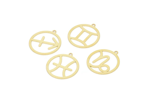 Raw Brass Zodiac Charms With 1 Loop
