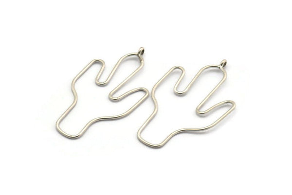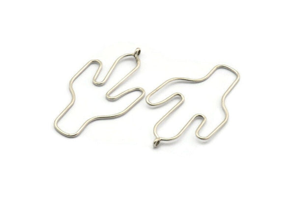 Cactus Earring Wires, 2 Antique Silver Plated Brass Cactus Earring Findings, Jewelry Supplies, Findings, Charms (54x31x1mm) BS 1701