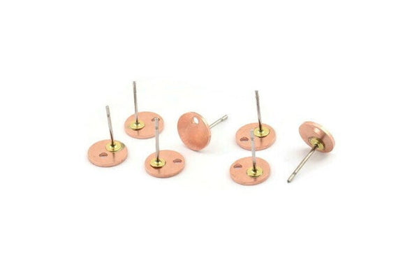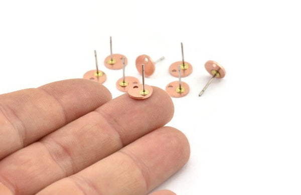 Raw Copper Cabochon Stud Earrings With 1 Hole