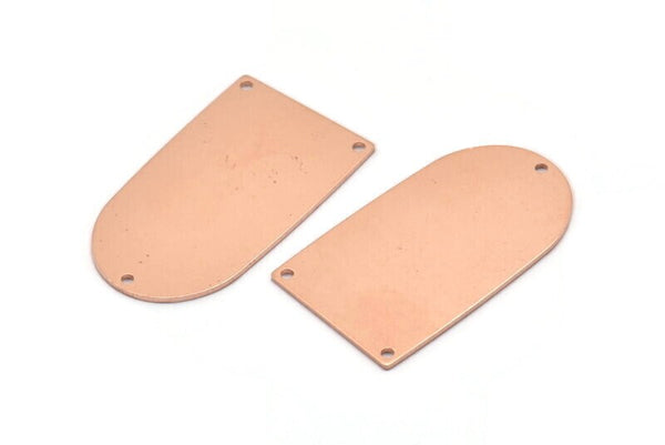 Copper D Shape, 2 Raw Copper D Shape Charms With 3 Hole, Pendants, Earring Findings (35x20x0.80mm) M03182