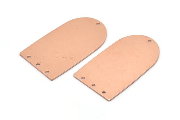 Copper D Shape, 2 Raw Copper D Shape Charms With 4 Hole, Pendants, Earring Findings (35x20x0.80mm) M03181