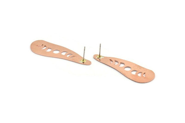 Raw Copper Moon Phases Stud Earrings