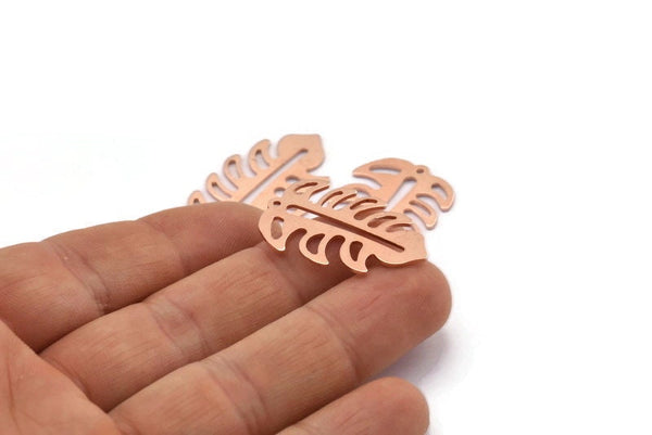 Copper Leaf Charm, 8 Raw Copper Leaf Charms With 1 Hole, Leaf Charm Earrings (30x20x0.80mm) M01720