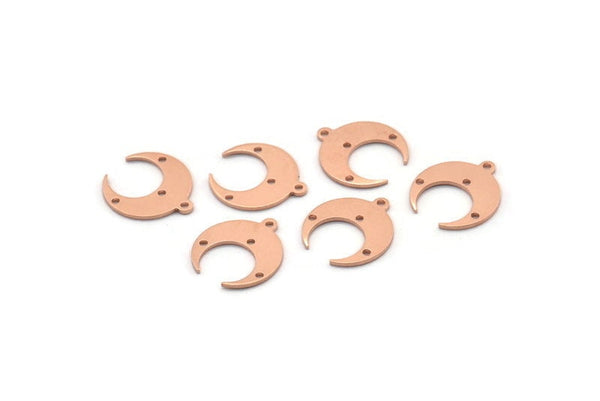 Copper Moon Charm, 12 Raw Copper Crescent Moon With 1 Loop And 3 Holes, Earrings (16x14x0.80mm) M01634