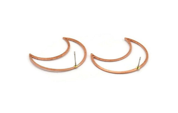 Raw Copper Crescent Moon Stud Earrings With 2 Holes