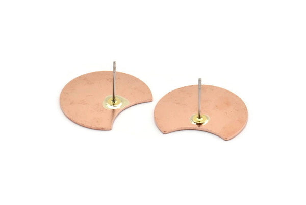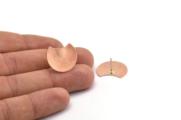 Raw Copper Crescent Moon Stud Earrings