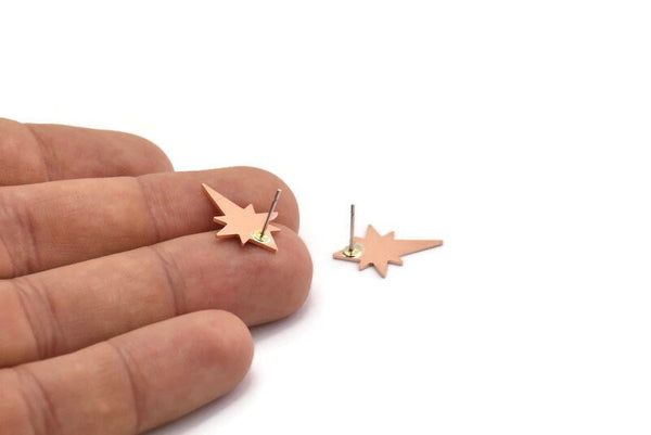 Copper North Star Earring, 6 Raw Copper Pole Star Stud Earrings (20x15x0.80mm) M02794